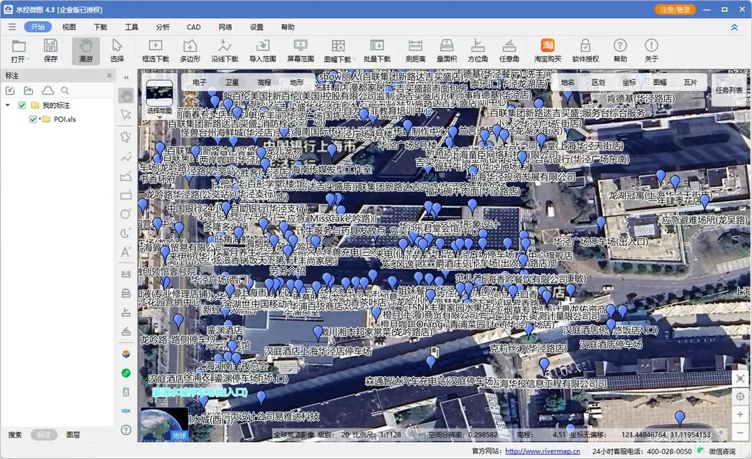 本教程用于从 Excel 转 SHP 的样例数据是从水经微图4(简称“微图4”)中下载的 POI数据。