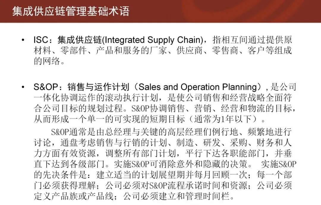 实践中,集成供应链涵盖多个关键流程,包括客户关系管理、需求预测、订单履行、生产调度、供应商协同等。这些流程并非孤立运作,而是通过统一的计划体系(如S&OP)和绩效指标(如OTD、完美订单率)相互衔接,形成闭环管理。