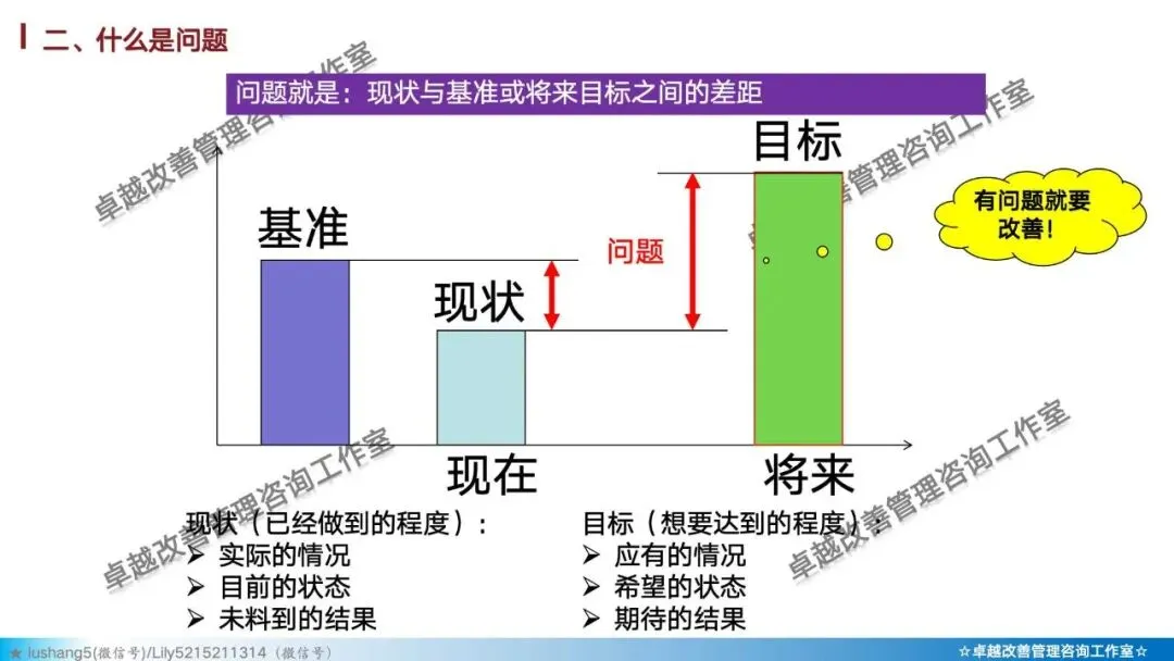 1. 描述具体问题:用“地点+对象+偏差”量化(如“X工位产品划伤率2%”)。