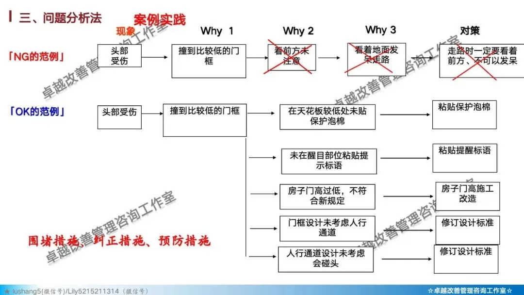 · 对策空泛:根因是“无润滑油”,对策却只写“加强教育”。