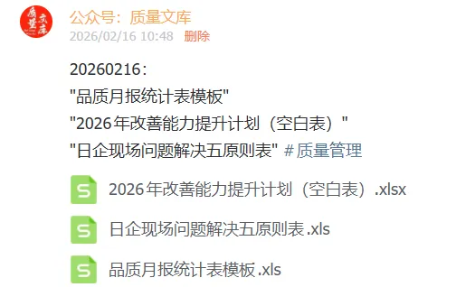 发送【质量培训】领取50个培训课件;