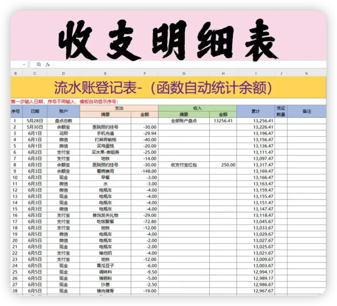 78款 收入支出明细表格 Excel模版 记账 (免费下载)
