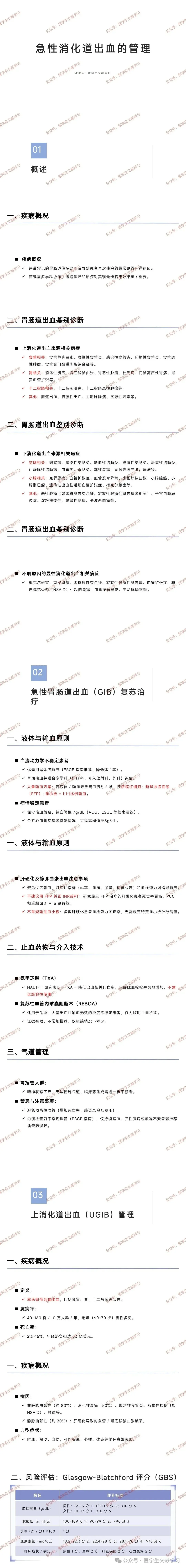 评分解读与临床决策:0~1 分为极低风险,可门诊管理并进行内镜检查;2~5 分为中等风险,需密切监测,可能需住院;≥6 分为高风险,需紧急住院干预,优先处理循环稳定。