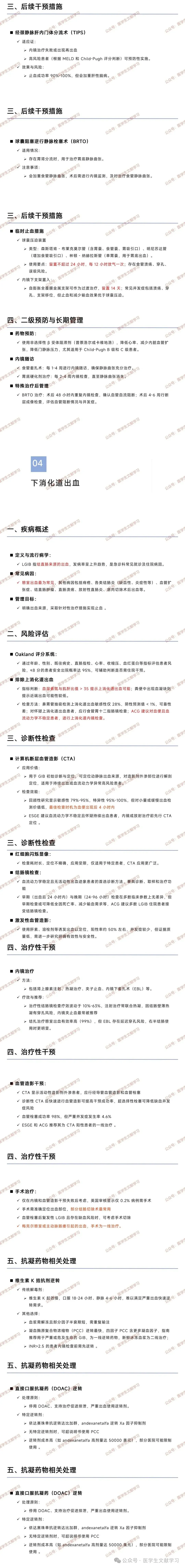 Oakland 评分系统:通过年龄、性别、既往病史、直肠指检、心率、收缩压、血红蛋白等指标评估患者风险,≤8 分的患者安全出院概率达 95%,可辅助判断是否需住院干预。