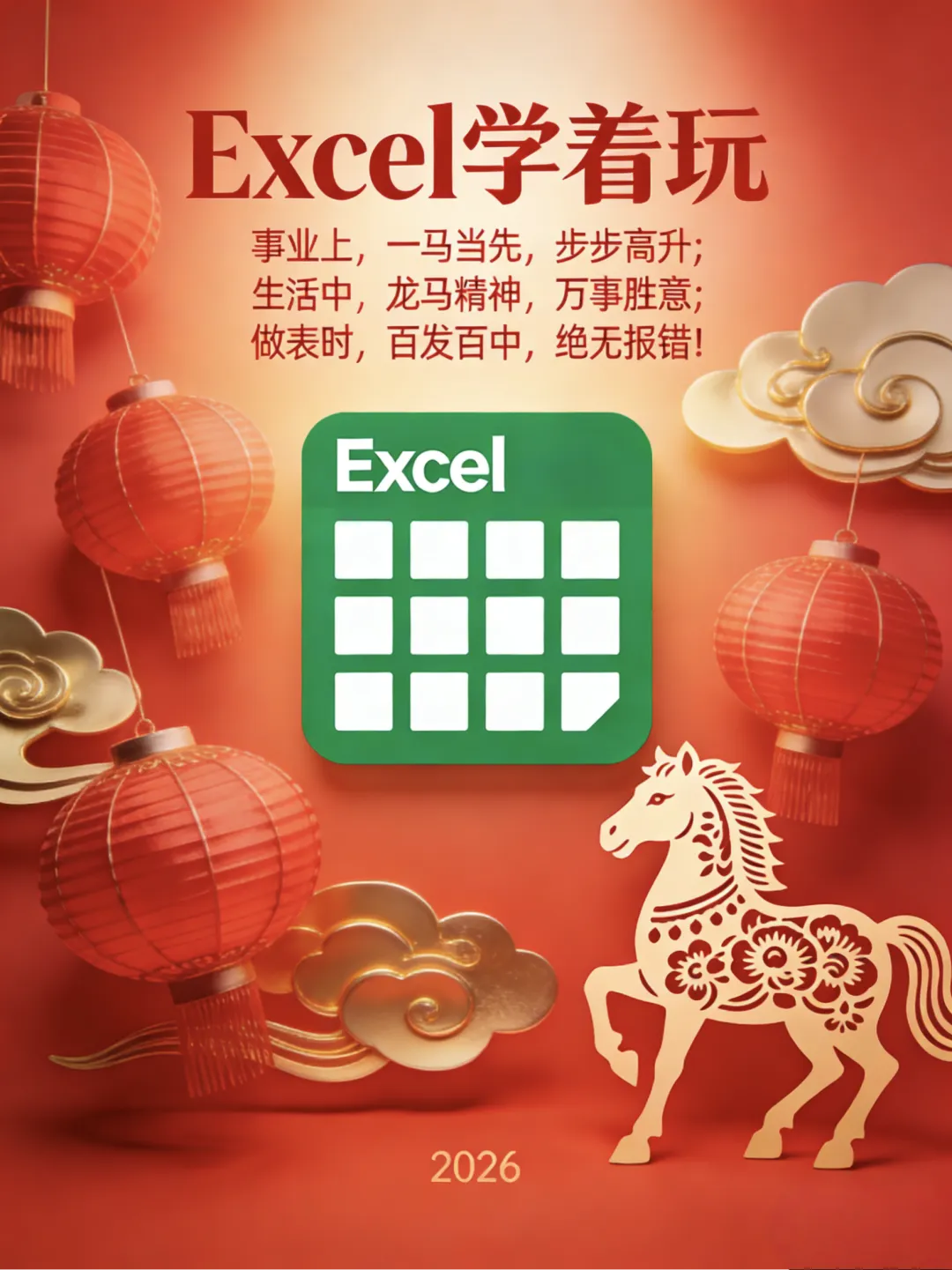 辞旧迎新,展望2026,Excel学着玩将继续深耕干货,推出更多优质、实用、接地气的推文。无论是零基础的入门教程,还是高阶的函数技巧,我都将一如既往,陪你在学习Excel的道路上,轻松“学着玩”,快速“用得上”!