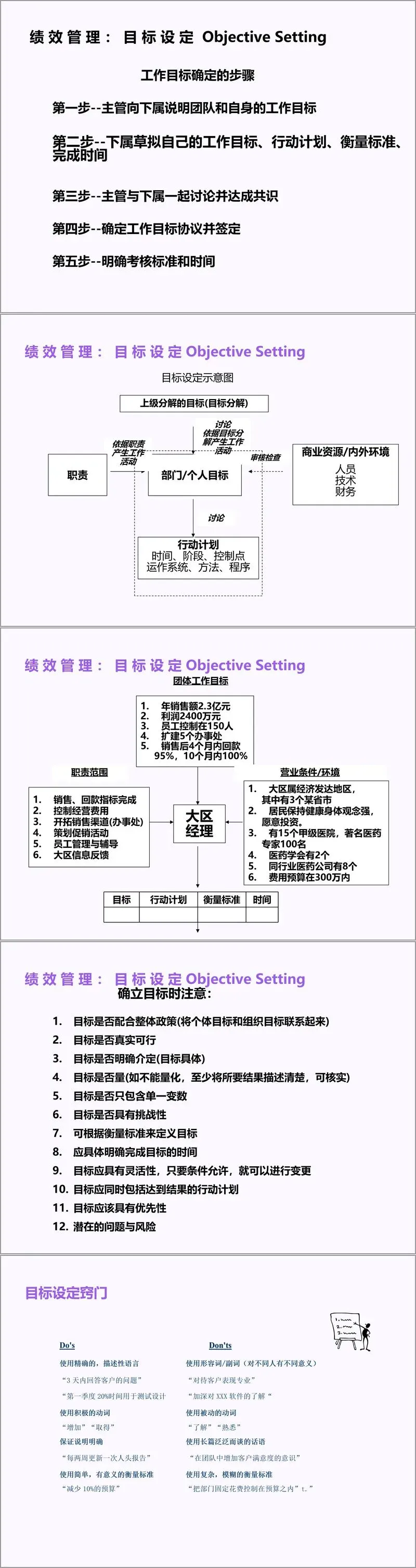 整体而言,该文件构建了从绩效目标到薪酬激励的完整管理链条,既有经典工具的系统讲解,又有实操案例与表格模板的落地支撑,覆盖了不同岗位、不同层级的管理需求。无论是绩效管理的流程搭建、目标设定的方法技巧,还是薪酬体系的结构设计、奖金分配的矩阵模型,都为企业人力资源管理实践提供了可直接参考的操作指南,有助于企业提升人力资源管理的科学性与激励性,实现员工与组织的双赢发展。