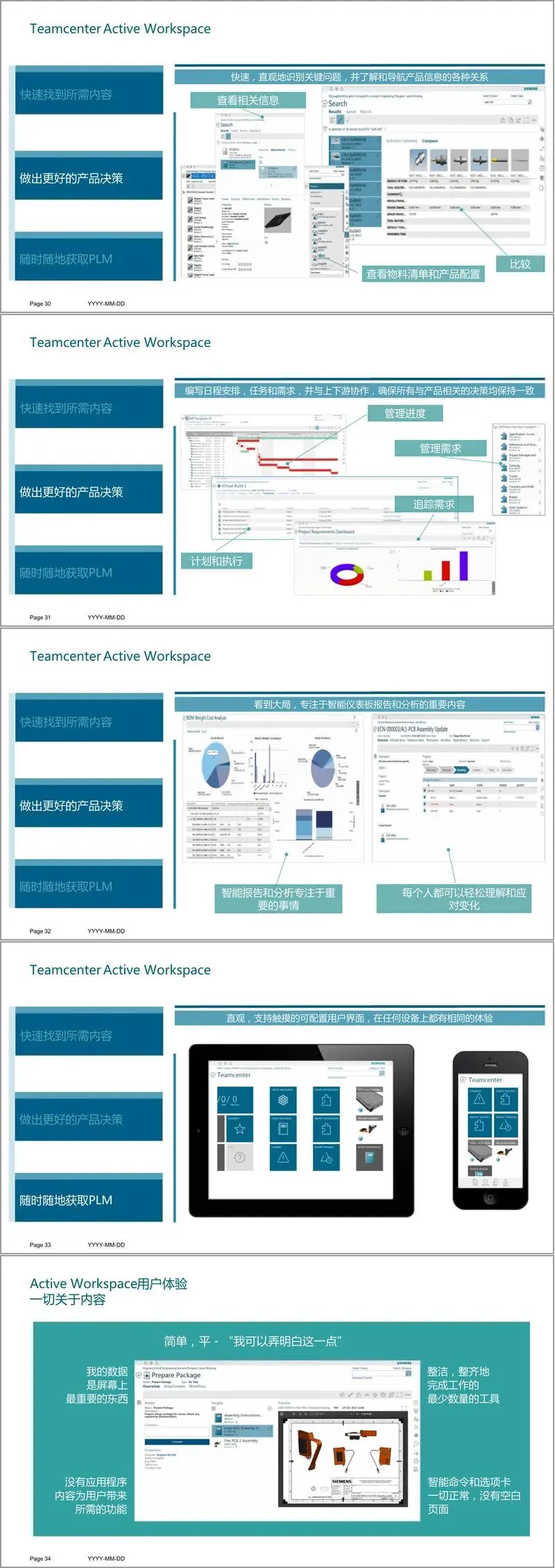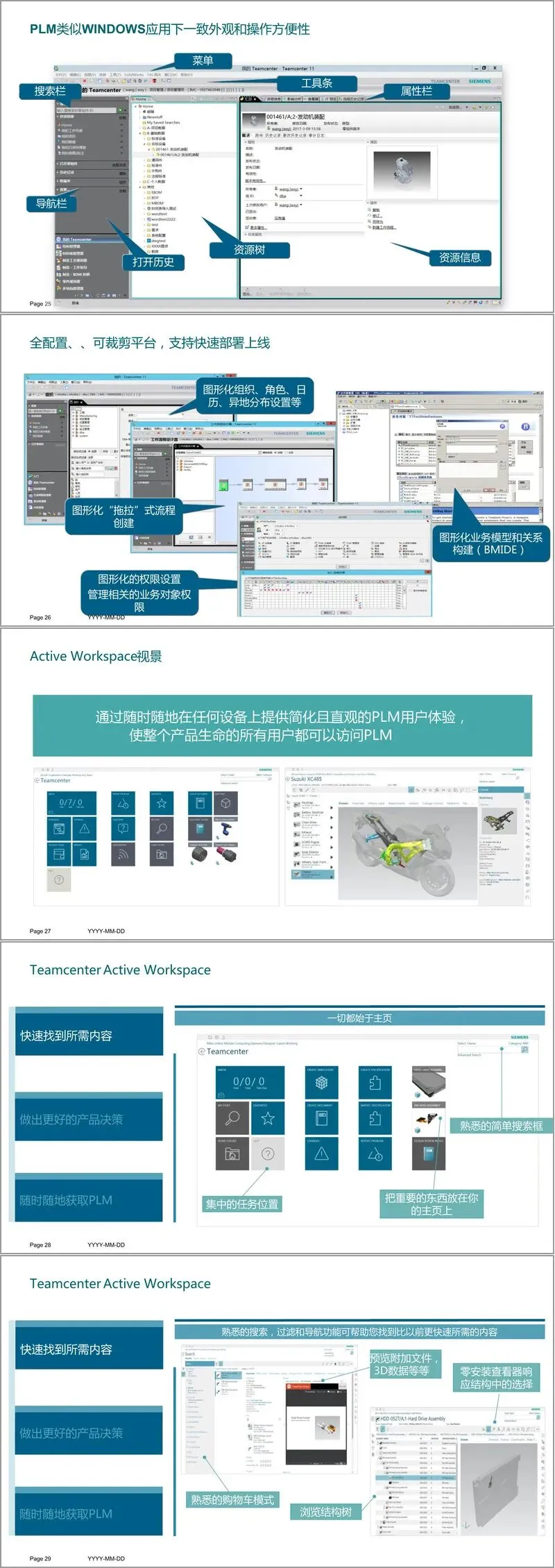 在技术架构设计上,方案推荐采用分层式架构。底层是Teamcenter统一平台,提供数据管理、工作流引擎等基础服务;中间层是各类业务功能模块,包括数字化设计、数字化工艺、数字化制造等;最上层是面向不同角色的门户界面。这种架构既保证了系统的统一性,又满足了不同部门的个性化需求。