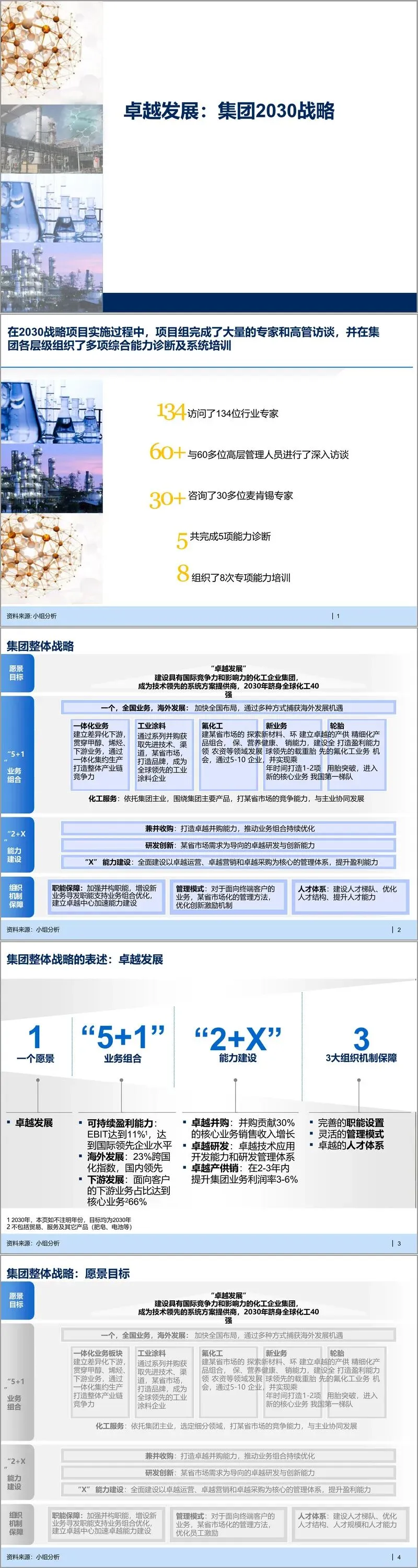 这份由麦肯锡编制的战略规划报告,为上海华谊化工集团勾勒了 2030 年 “卓越发展” 的全景蓝图,通过 “愿景目标 - 业务组合 - 能力建设 - 组织保障” 四维体系,明确了集团从生产制造商向技术领先的系统方案提供商转型的路径,兼具战略高度与实操细节,是化工企业转型升级的标杆性规划。