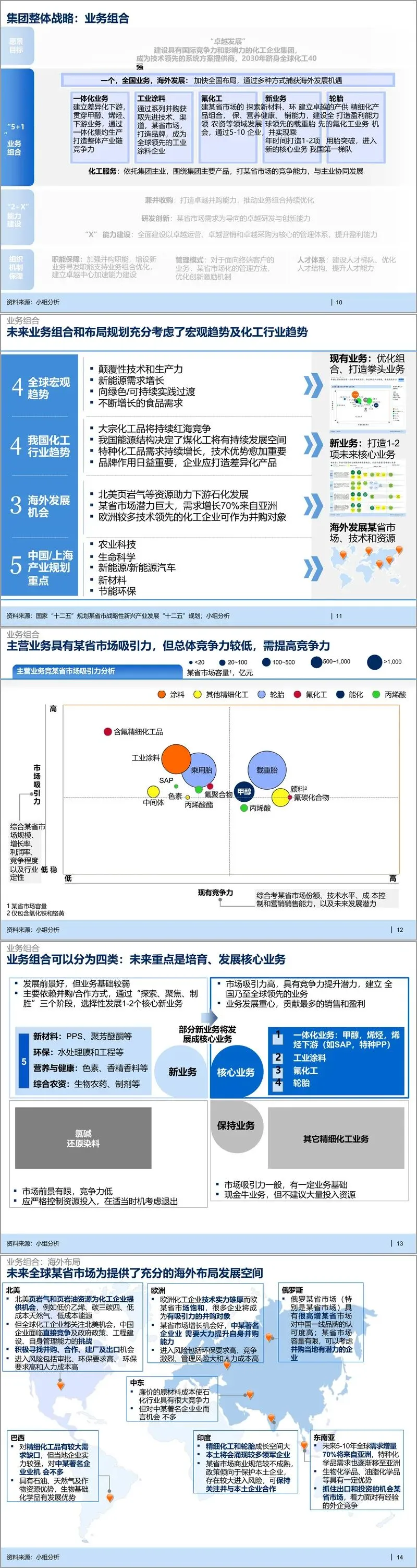 整体而言,该规划深度契合化工行业趋势与集团资源禀赋,通过业务组合优化实现产业升级,借助能力建设强化核心壁垒,依托组织保障破解转型瓶颈,形成了 “战略 - 业务 - 能力 - 组织” 的闭环体系。报告既注重短期利润提升与业务突破,又着眼长期竞争力构建,为上海华谊化工集团在行业变革中实现高质量发展提供了清晰的行动指南。