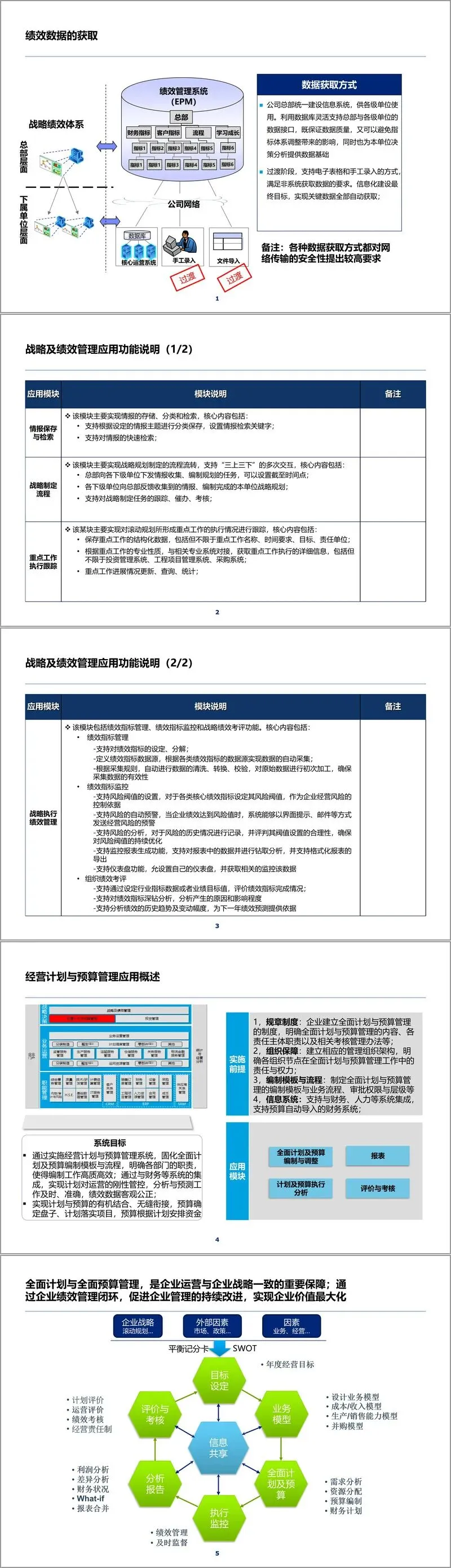 方案对每个核心应用系统都进行了详细的功能描述。从战略及绩效管理、经营计划与预算管理、投资管理等战略层系统,到业务运营管理、计划调度管理、运输管理、仓储管理等运营层系统,再到财务管理、人力资源管理、采购管理等职能层系统,每个系统都明确了实施前提、系统目标、功能模块和实现价值。