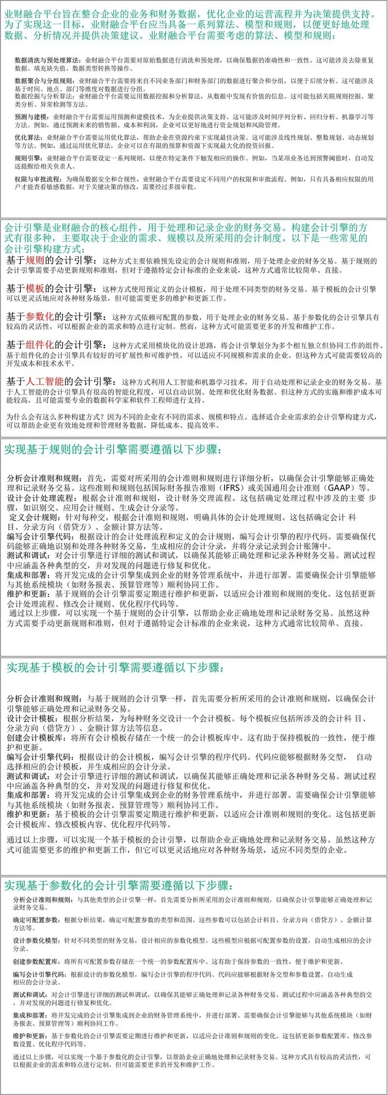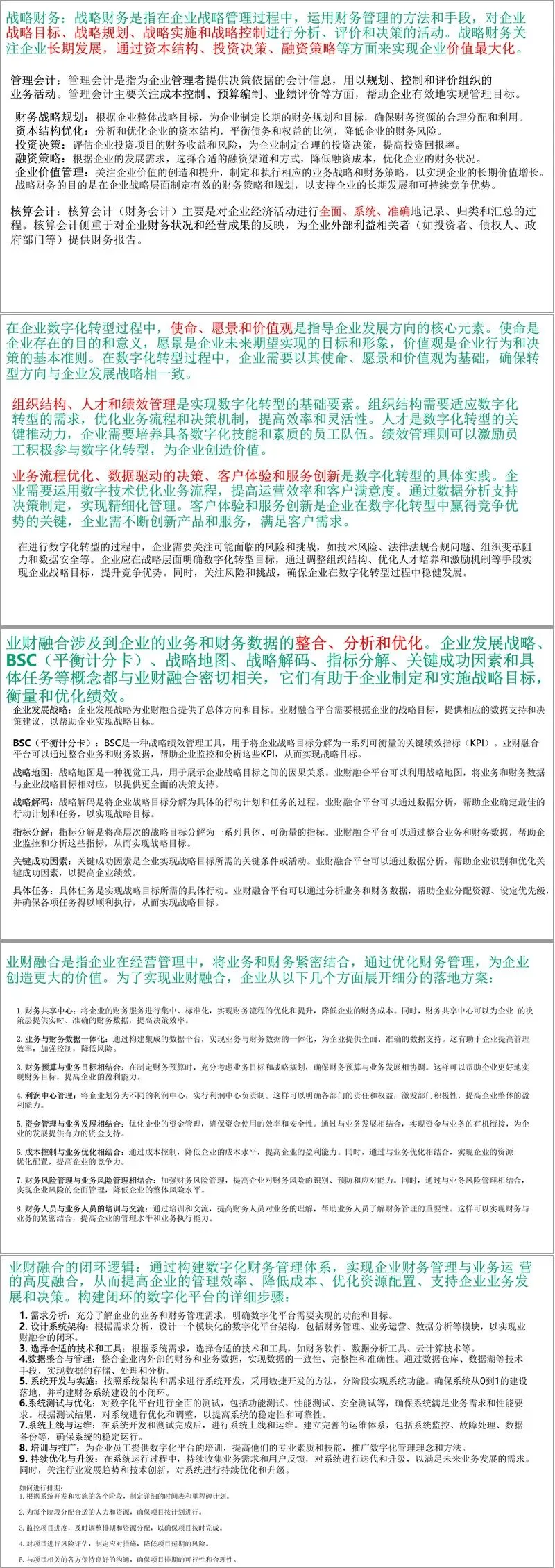整体而言,该方案突破了传统业财融合的技术边界,将生成式 AI、区块链等新技术与管理模型深度结合,既提供了宏观的战略框架,又包含具体的落地路径与案例参考,为企业在数字化转型中实现业财深度融合、提升决策效率、构建核心竞争力提供了全面且可行的行动指南。