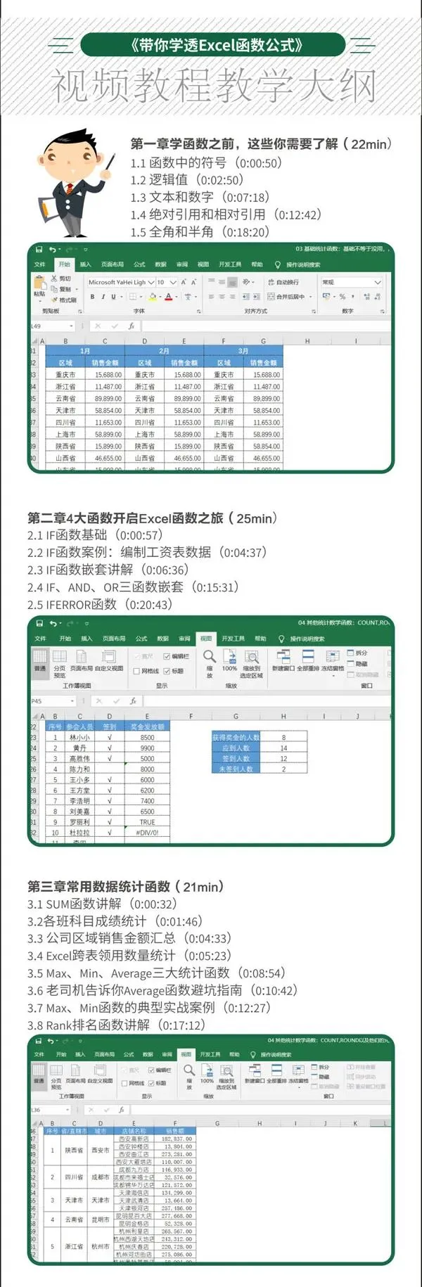 OK,下面就是《带你学透Excel函数公式》视频课程教学大纲,一起看看吧!