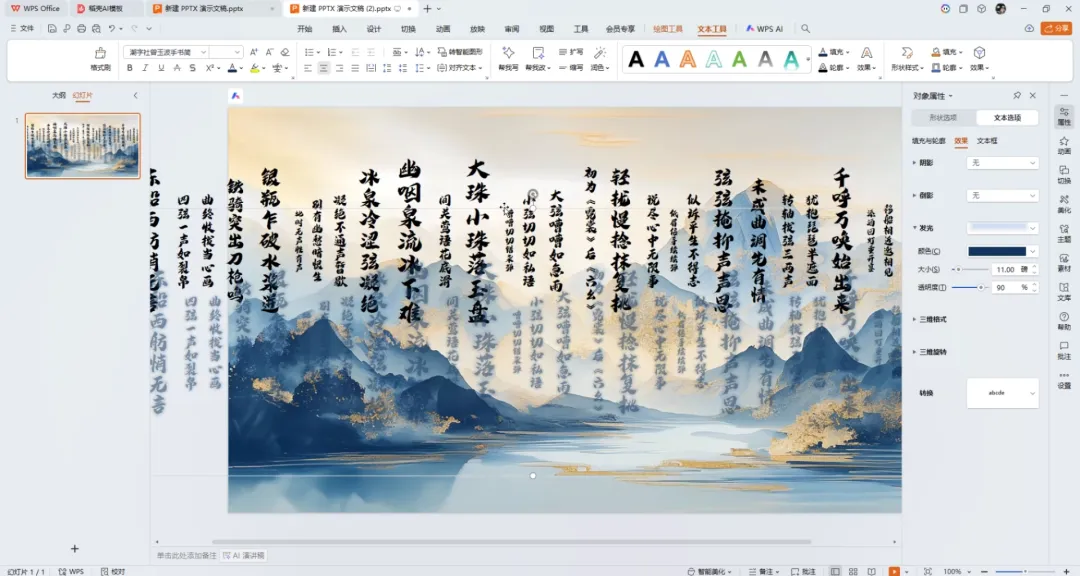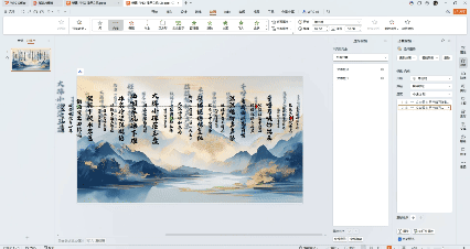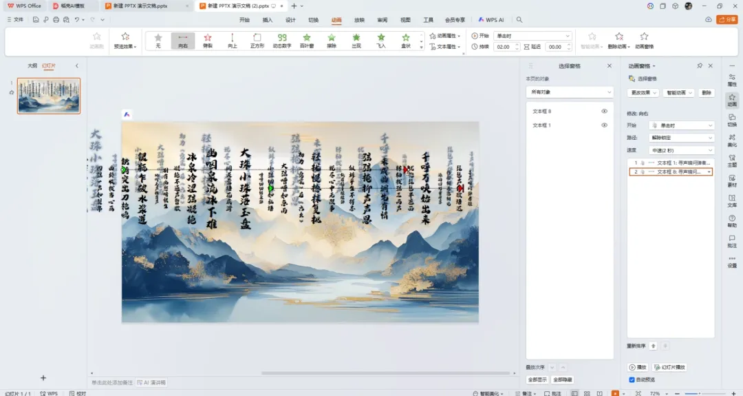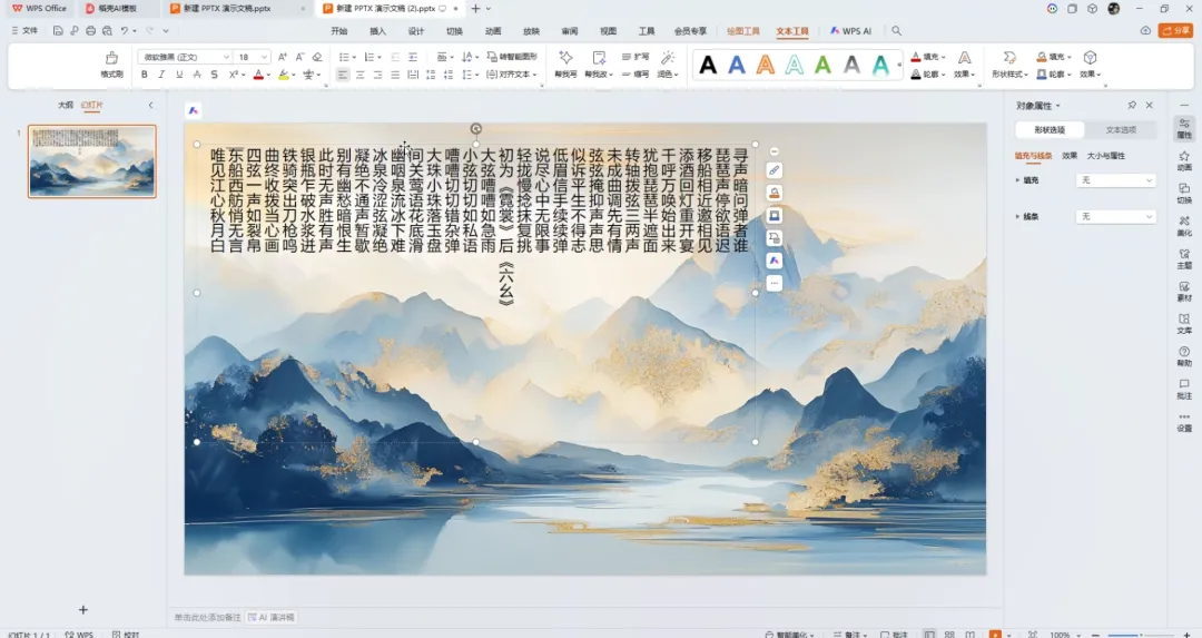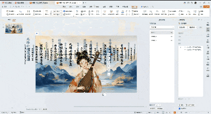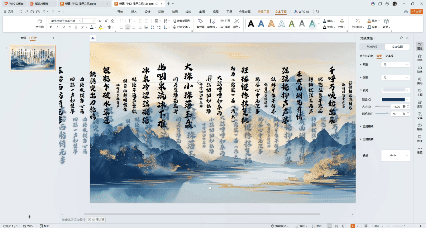 ①首先设置背景格式,选择一张有质感的古风背景图片,再插入文本框,输入你想要做出浮动效果的文字,将文字方向改为竖排。