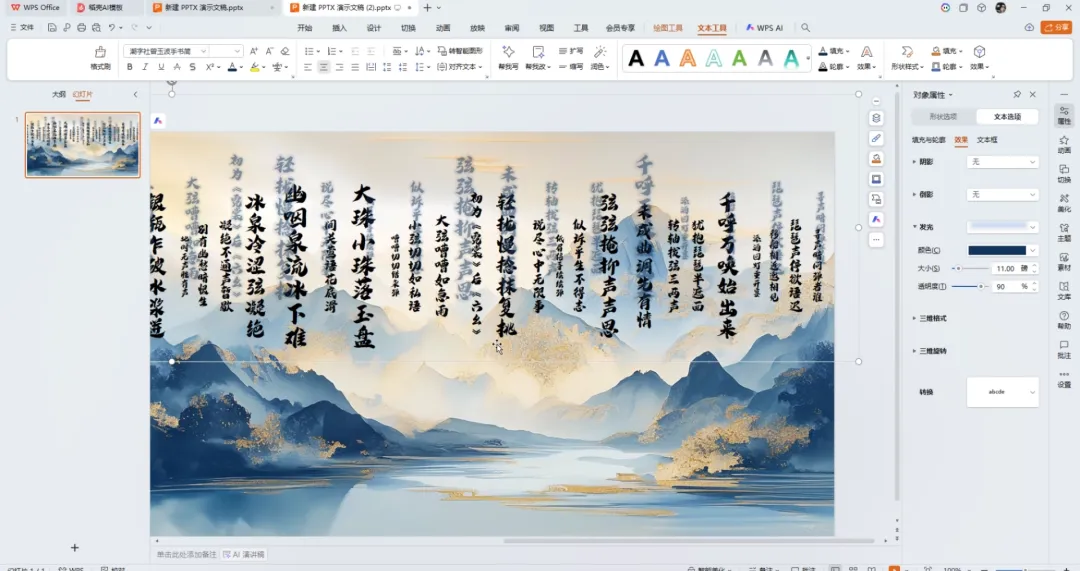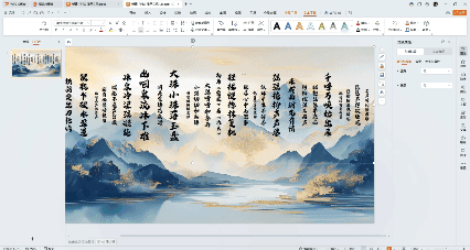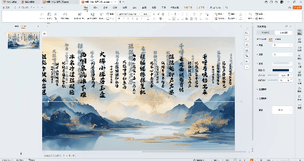 ②然后选择你喜欢的书法字体,和背景更适配,调整字体的大小,将文字错落排布,视觉效果更佳。
