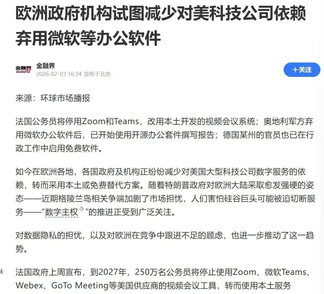 那句“弯的路”,像一颗石子投入深潭,在之后几天里荡开无声的涟漪。直到在回京高铁上,看到法国人要换掉Teams的新闻弹窗——“为降低外部依赖,转向本土方案”——那涟漪才猛地撞上了什么,轰然作响。