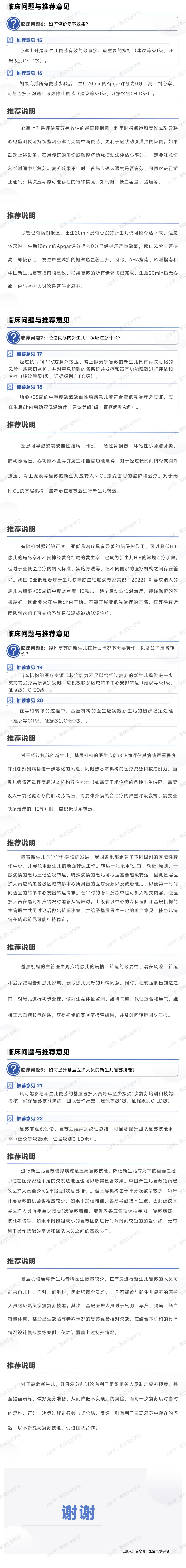 如果完成所有复苏步骤后,生后 20 min 的 Apgar 评分为 0 分,测不到心率,可与监护人沟通后考虑停止复苏(建议等级 1 级,证据级别 C-LD 级)。