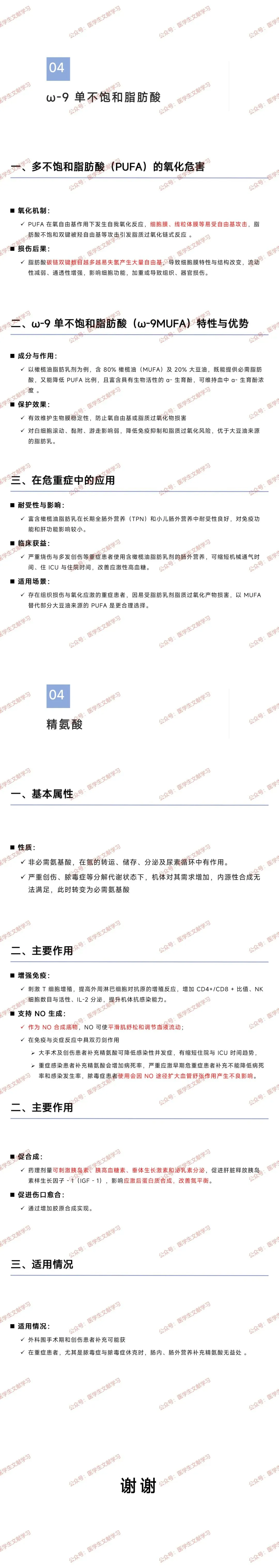 药理营养素的核心价值是 “治疗辅助”,而非单纯营养补充,需结合危重症类型(创伤、感染、ARDS 等)精准选择。