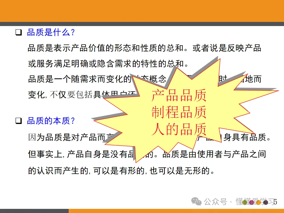 品质是产品价值的形态和性质的总和,它涵盖了产品的功能、可靠性、耐用性、安全性、经济性等多个维度。具体来说,品质是指产品或服务满足或超过客户期望的能力,是客户对产品或服务整体性能和价值的感知和评价。因此,品质管理需要关注客户需求和期望,确保产品或服务能够满足并超越客户的期望。
