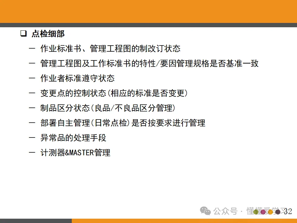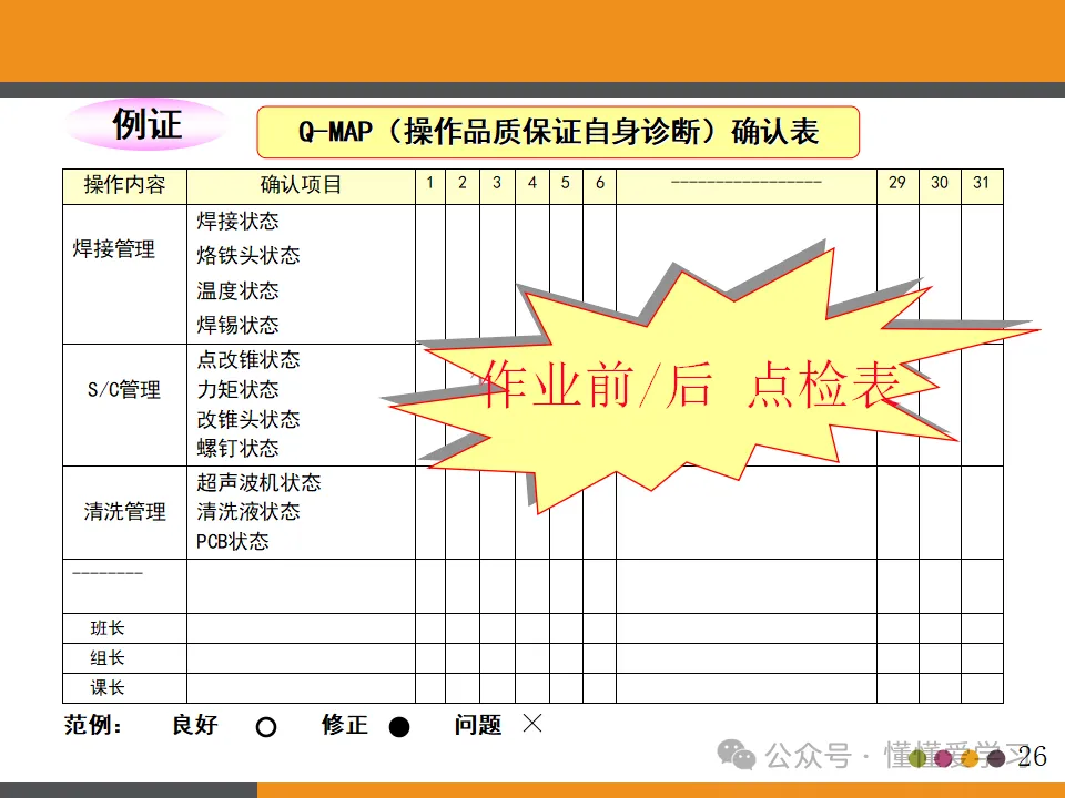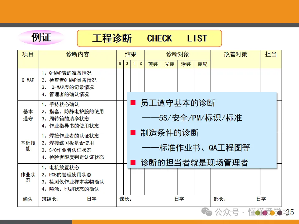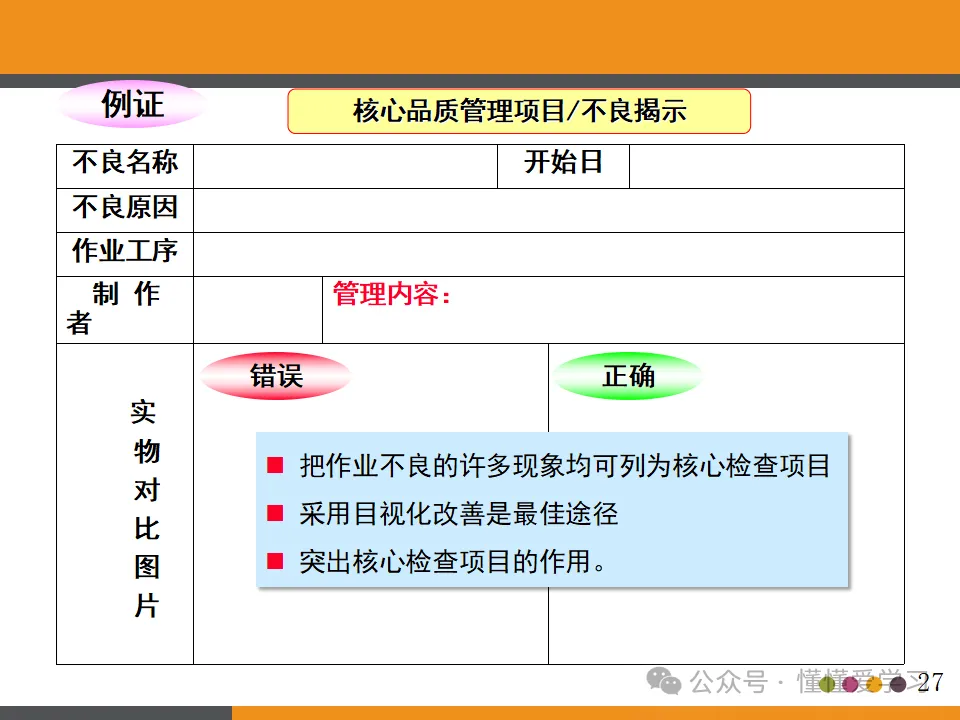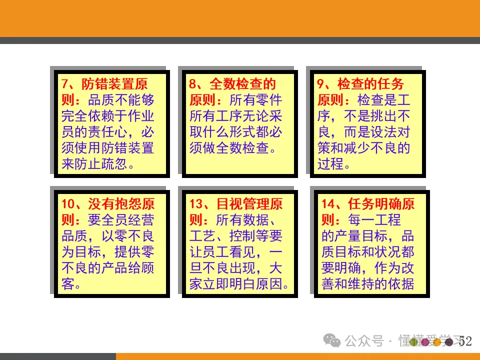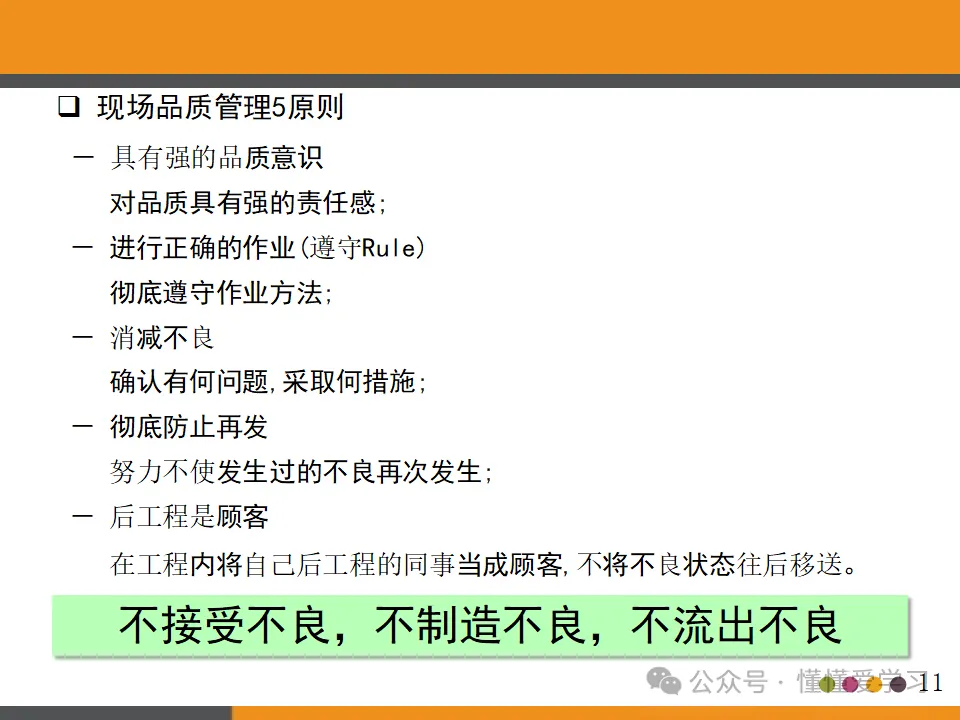 - 在工程内检查原则:强调品质是制造出来的,而非检查出来的。因此,需要在生产过程中进行严格的品质控制,确保每个环节都符合品质标准。