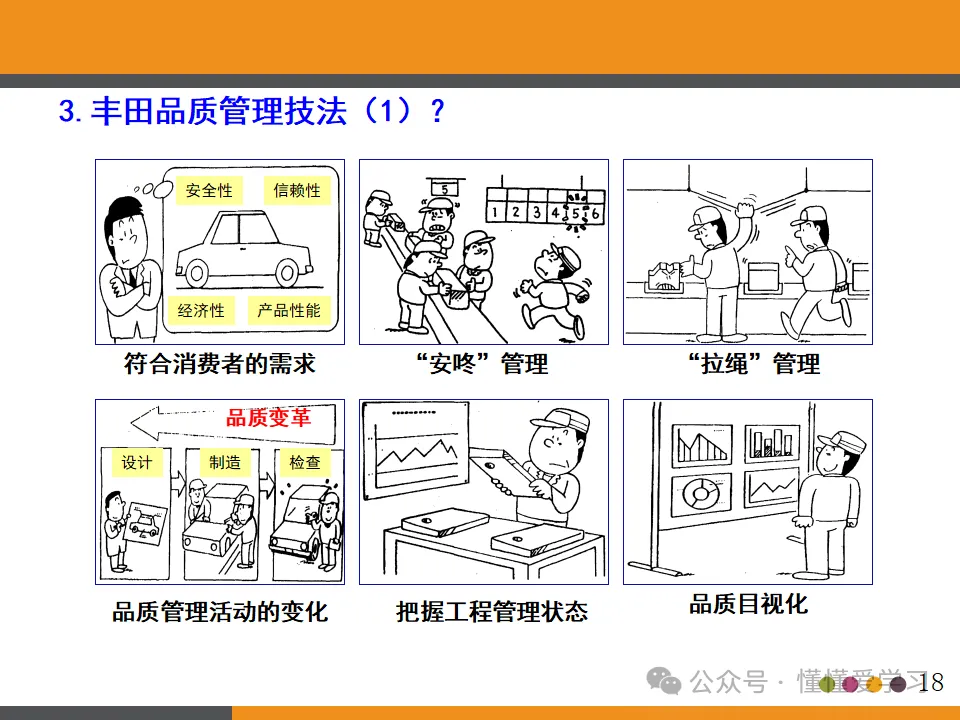 - 品质管理技法:丰田的品质管理技法涵盖了安全性、信赖性、经济性和产品性能的全面提升。通过“安咚”管理与“拉绳”管理等具体手法,丰田实现了品质的持续变革和持续改进。这些技法强调了全员参与和持续改进的重要性,是实现高品质产品的关键。
