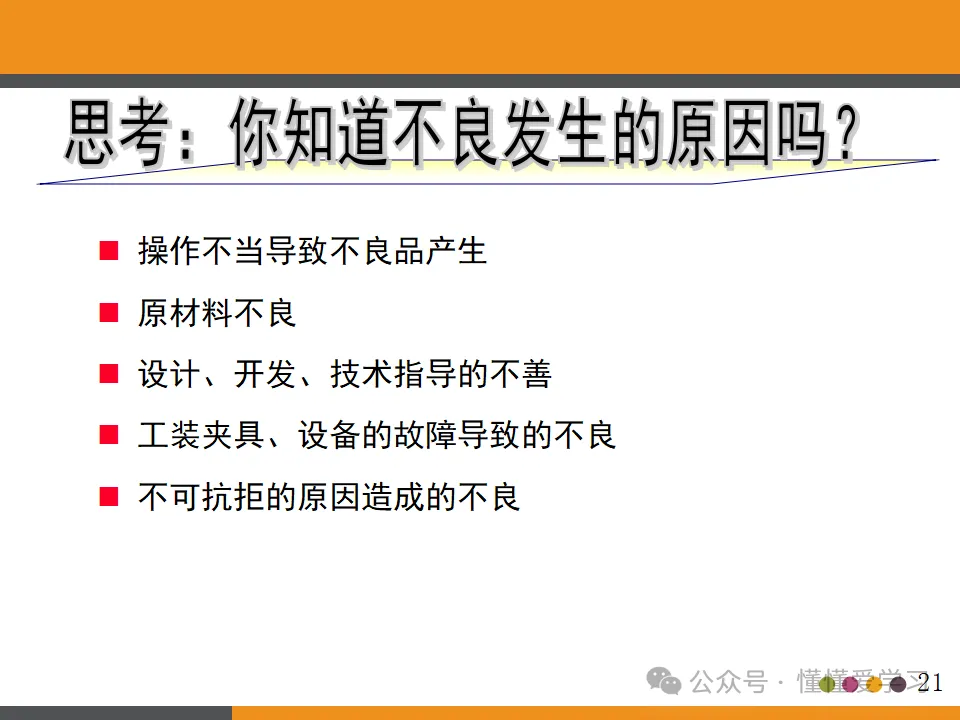 - 逮捕现行犯原则:对于导致不良品产生的原因,需要迅速查明并采取相应的措施进行改进,确保问题得到根本解决。