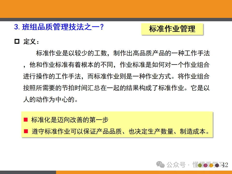 - 品质管理:品质管理不仅是检查和控制,更是一种思维方式和企业文化。班组长需要深入理解品质的重要性,掌握品质管理的基本理念和方法,包括如何制定品质标准、如何进行品质检验、如何分析品质问题等。