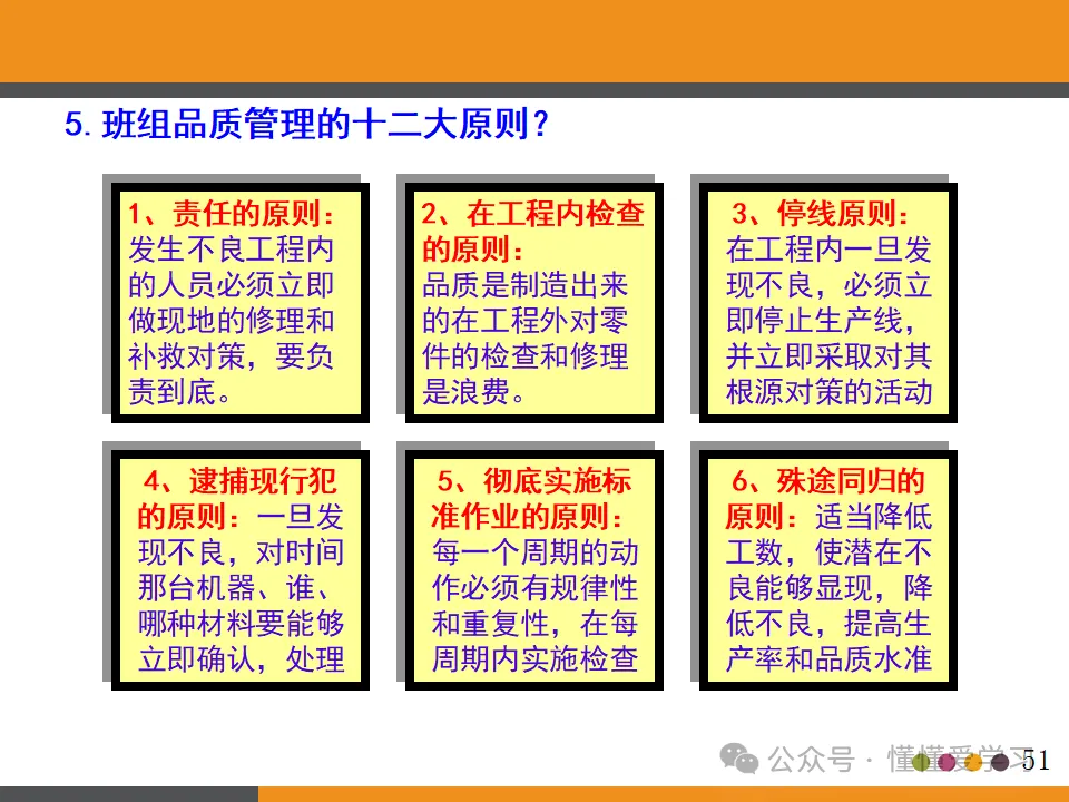 班组品质管理的十二大原则是指导日常工作的基本准则,具体包括: