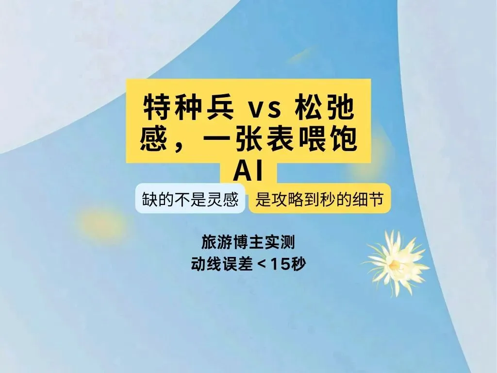 旅游博主别再手写攻略了:用Excel+AI批量生成“特种兵”和“松弛感”双版本旅行方案(附真实动线校验表)