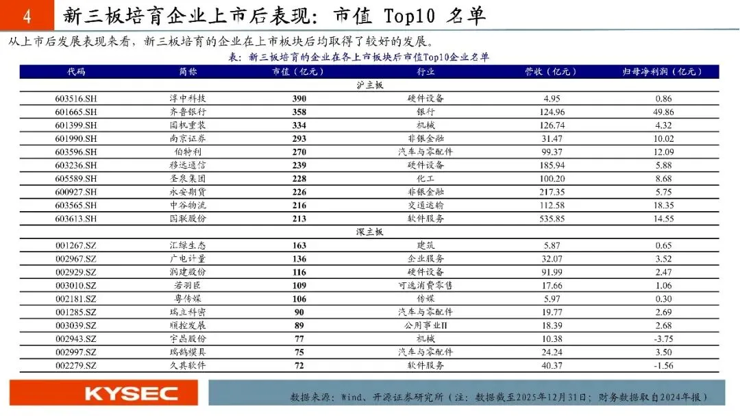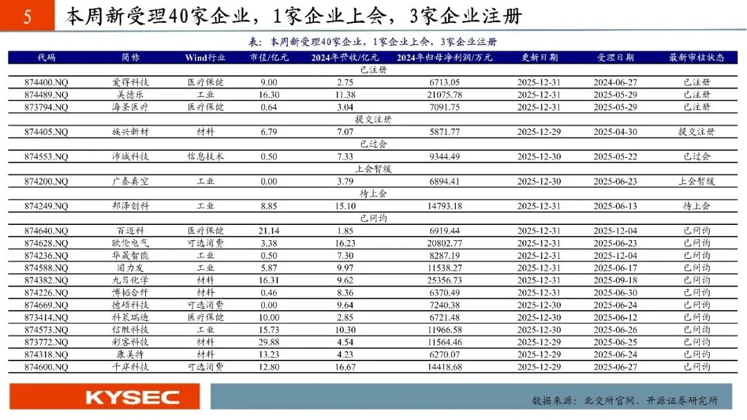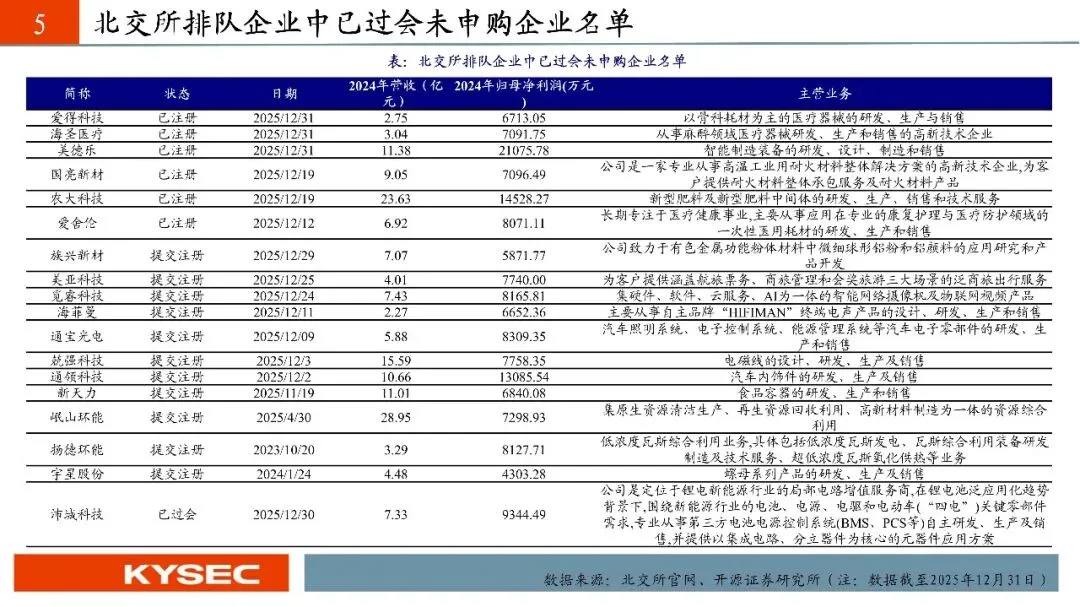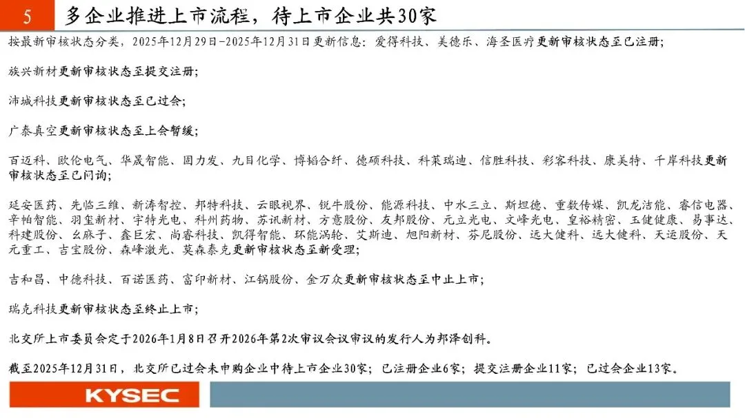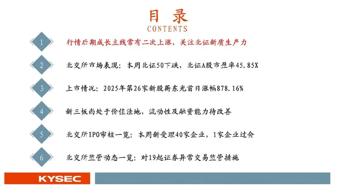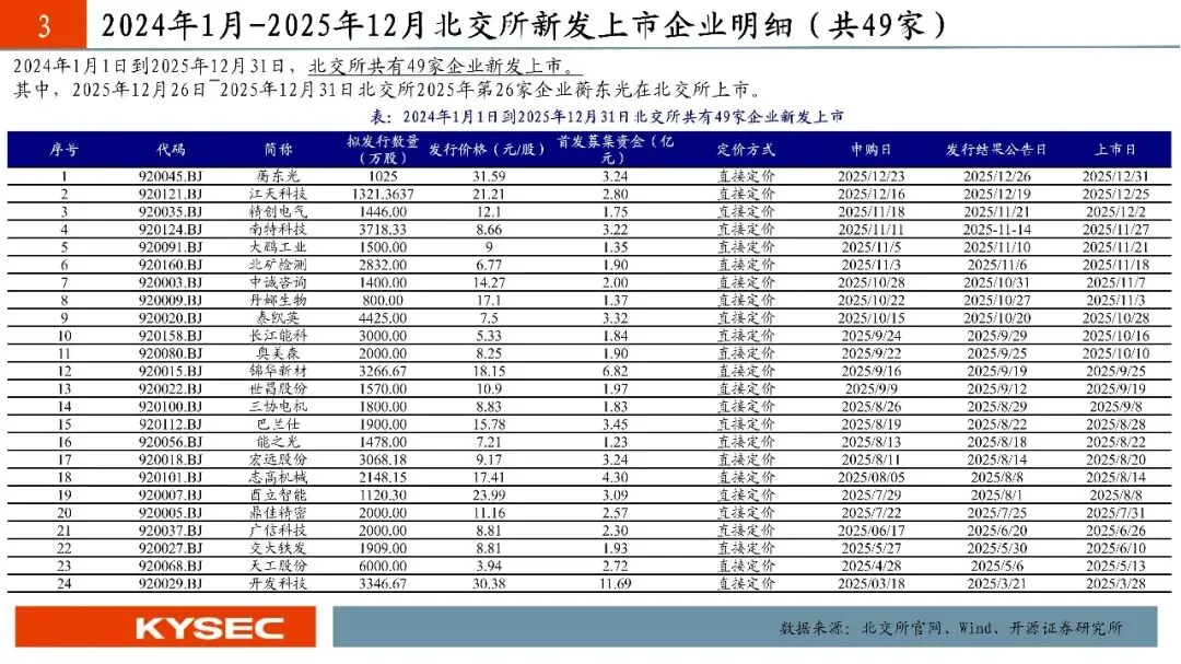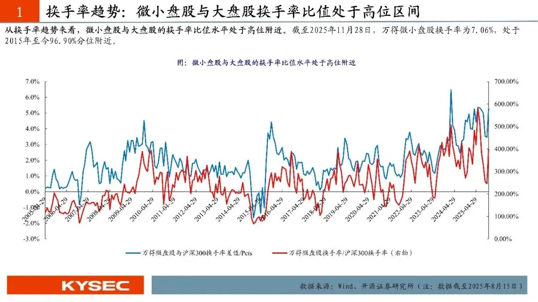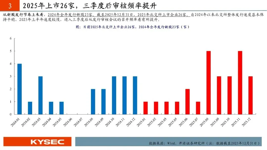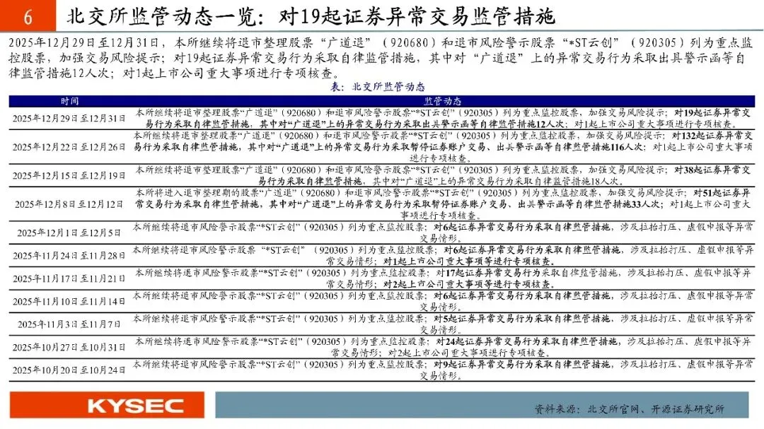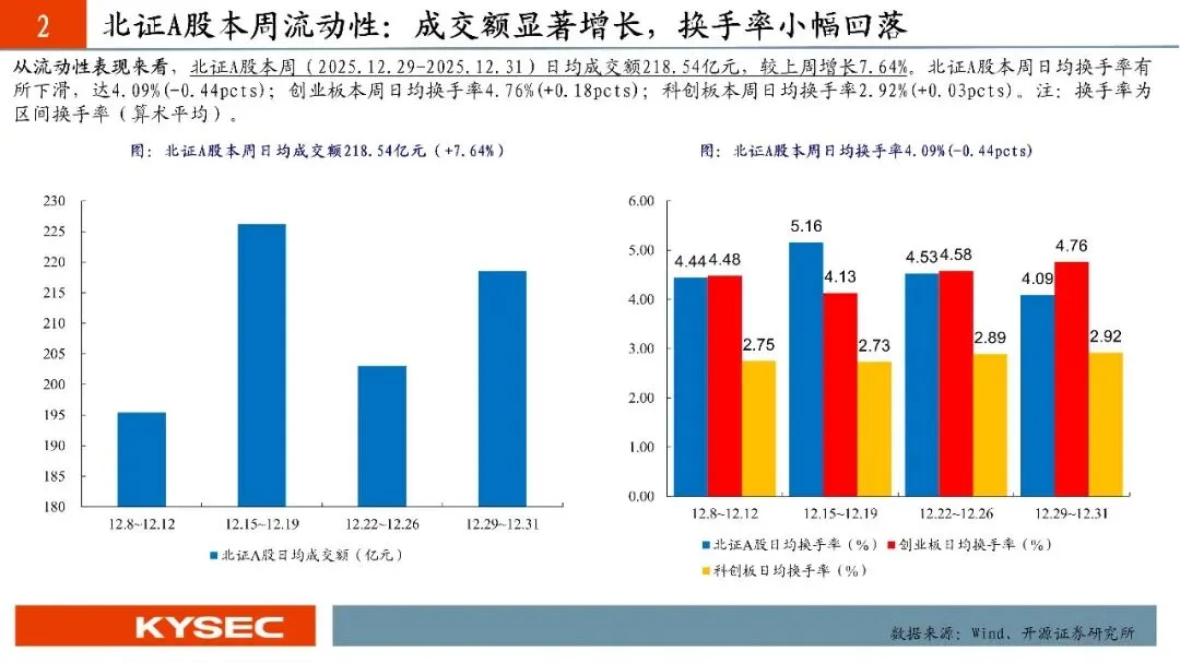 2024年以来北交所经历了2024年“924”和2025年一季度到三季度行情,2025年北证50指数四季度整体稳定。复盘2013-2015年创业板行情来看,行情后期成长主线业绩兑现通常有第二波上涨,关注春季中的北证代表新质生产力的产业链机会。1)本轮大行情有0-1的产业趋势背景,AI和科技产业迅速迭代发展,2025年初的DeepSeek、算力、人形机器人等“新质生产力”科技叙事,2025年三季度开始的AI算力和数据中心、商业航天、核聚变等以及并购重组等政策支持,北交所聚集的科技中小型企业更容易通过技术迭代以及产业链外延拓展获得成长性以及估值溢价。2)从影响风格变化的估值方面来看,微小盘股与大盘股的估值比值水平并未达到历史极值。3)从流动性指标换手率来看,微小盘股与大盘股的换手率比值水平处于高位附近。4),复盘2013-2015年创业板行情来看,第一阶段2012年12月1日-2014年3月1日:在济增速下行背景下,步入产业结构转型升级的关键阶段,市场更关注0-1的新产业格局的边际变化,市场规模具备更大想象空间,小盘股更具相对优势,这一阶段创业板指数涨幅达136.48%,高于沪深300指数的1.84%。第二阶段2014年11月1日-2015年1月1日:初期小盘股业绩兑现偏弱,中期往往会休整向大盘风格转换,其中这一阶段创业板指数涨幅达-2.74%,低于沪深300指数的40.88%。第三阶段2015年1月1日-2015年6月11日:行情后期小盘成长主线业绩兑现,确定性更高,大概率出现第二波上涨且上涨的速度和空间均比第一阶段更大,其中这一阶段创业板指数涨幅达162.42%,高于沪深300指数的50.17%。