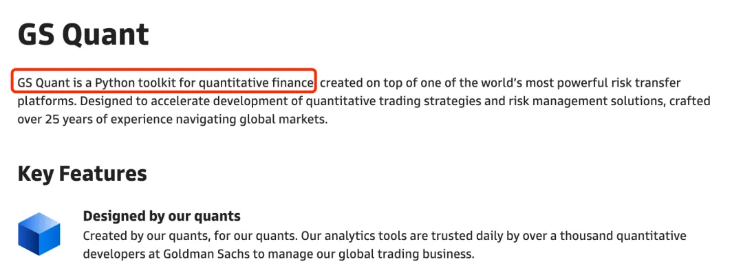 btw,高盛Quant团队对外开放的唯一量化金融工具就是一款Python工具包。