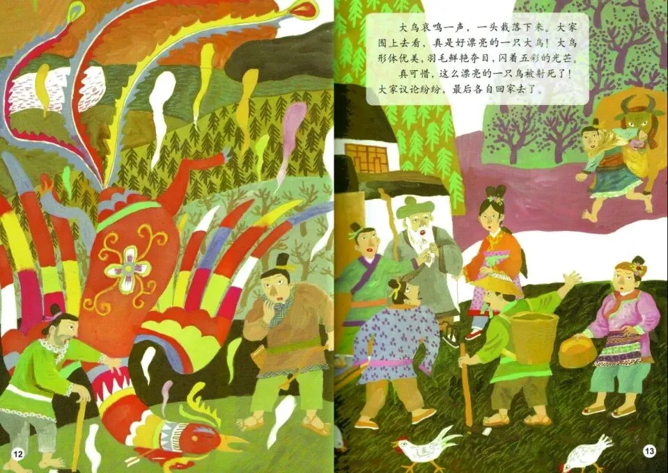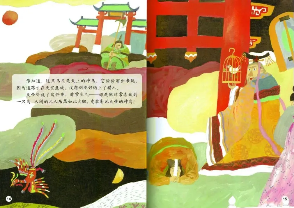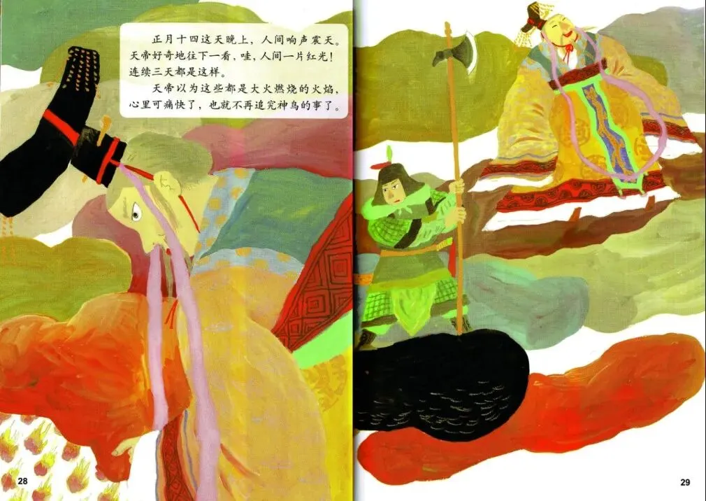 天帝以为这些都是大火燃烧的火焰,心里可痛快了,也就不再追究神鸟的事了。