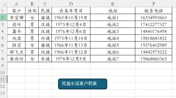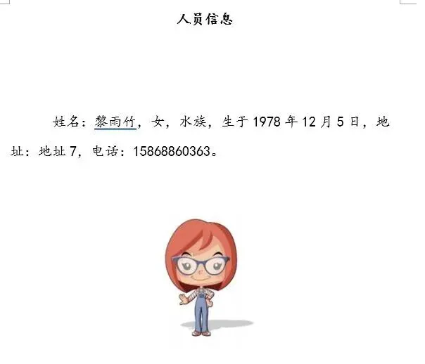 Sub BatchCreateDocs() Dim wdApp As Object Dim wdDoc As Object Dim wdRange As Object Dim wdInlineShape As Object Dim templatePath As String Dim outputFolder As String Dim picFolder As String Dim picFile As String Dim ws As Worksheet Dim lastRow As Long Dim i As Long Dim customer As String Dim gender As String Dim ethnicity As String Dim birthStr As String Dim address As String Dim phone As String templatePath = ThisWorkbook.Path & "\人员信息-模板.docx" outputFolder = ThisWorkbook.Path & "\人员文档\" picFolder = ThisWorkbook.Path & "\图片\" If Dir(templatePath) = "" Then MsgBox "未找到模板文件:" & vbCrLf & templatePath, vbCritical Exit Sub End If If Dir(outputFolder, vbDirectory) = "" Then MkDir outputFolder End If On Error Resume Next Set wdApp = GetObject(, "Word.Application") If Err.Number <> 0 Then Set wdApp = CreateObject("Word.Application") End If On Error GoTo 0 wdApp.Visible = False Set ws = ThisWorkbook.Sheets("Sheet1") lastRow = ws.Cells(ws.Rows.Count, "A").End(xlUp).Row For i = 2 To lastRow customer = Trim(ws.Cells(i, "A").Value) gender = Trim(ws.Cells(i, "B").Value) ethnicity = Trim(ws.Cells(i, "C").Value) If IsNumeric(ws.Cells(i, "D").Value) Then birthStr = Format(ws.Cells(i, "D").Value, "yyyy年mm月dd日") Else birthStr = ws.Cells(i, "D").Text End If address = Trim(ws.Cells(i, "E").Value) phone = Trim(ws.Cells(i, "F").Value) Set wdDoc = wdApp.Documents.Open(templatePath) With wdDoc.Content.Find .ClearFormatting .Replacement.ClearFormatting .Text = "姓名: , , ," .Replacement.Text = "姓名:" & customer & "," & gender & "," & ethnicity & "," .Execute Replace:=2 .Text = "生于 ," .Replacement.Text = "生于" & birthStr & "," .Execute Replace:=2 .Text = "地址: ," .Replacement.Text = "地址:" & address & "," .Execute Replace:=2 .Text = "电话: 。" .Replacement.Text = "电话:" & phone & "。" .Execute Replace:=2 .Text = "图片" .Replacement.Text = "" .Execute Replace:=2 End With picFile = picFolder & customer & ".jpg" If Dir(picFile) <> "" Then Set wdRange = wdDoc.Range(wdDoc.Content.End - 1, wdDoc.Content.End - 1) Set wdInlineShape = wdDoc.InlineShapes.AddPicture(picFile, False, True, wdRange) wdInlineShape.Range.ParagraphFormat.Alignment = 1 Else wdDoc.Content.InsertAfter vbCrLf & "[未找到图片:" & customer & ".jpg]" End If wdDoc.SaveAs2 outputFolder & customer & ".docx" wdDoc.Close False Set wdDoc = Nothing Next i wdApp.Quit Set wdApp = Nothing MsgBox "批量生成完成!文档保存在:" & vbCrLf & outputFolder, vbInformationEnd Sub文末有示例文件下载链接,你可以直接套用模板,修改数据即可。