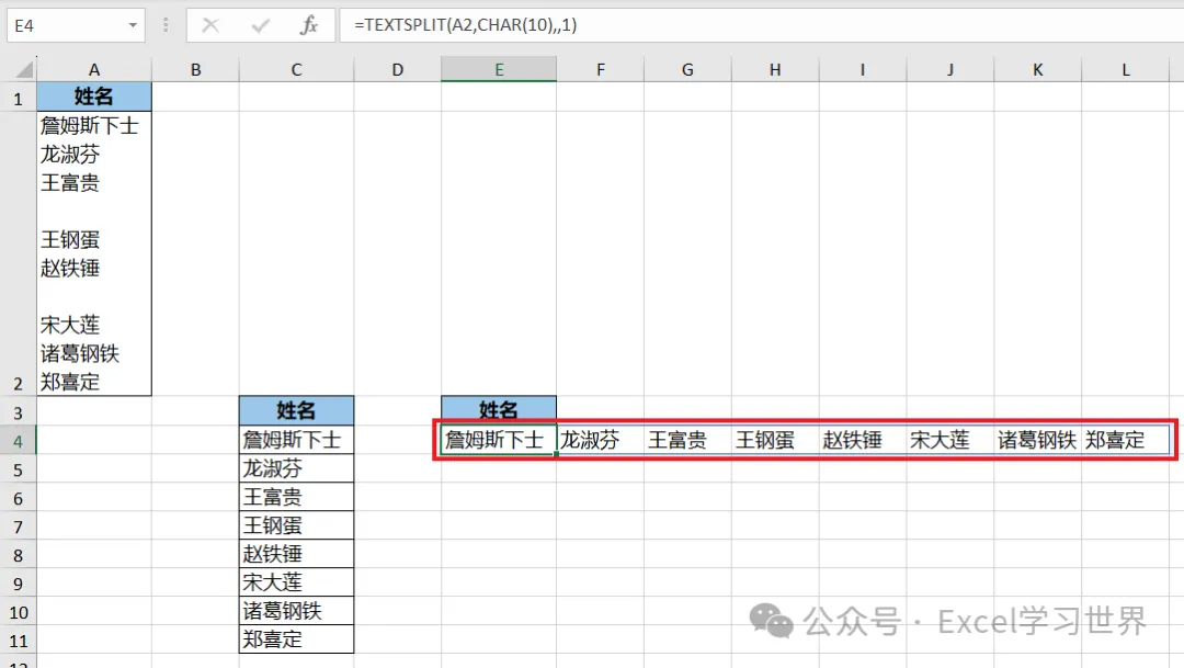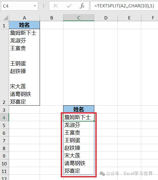 将合并单元格内的每一行内容提取出来按行或按列排放,除了以前教过的各种技巧,还可以用 365 函数一步实现。