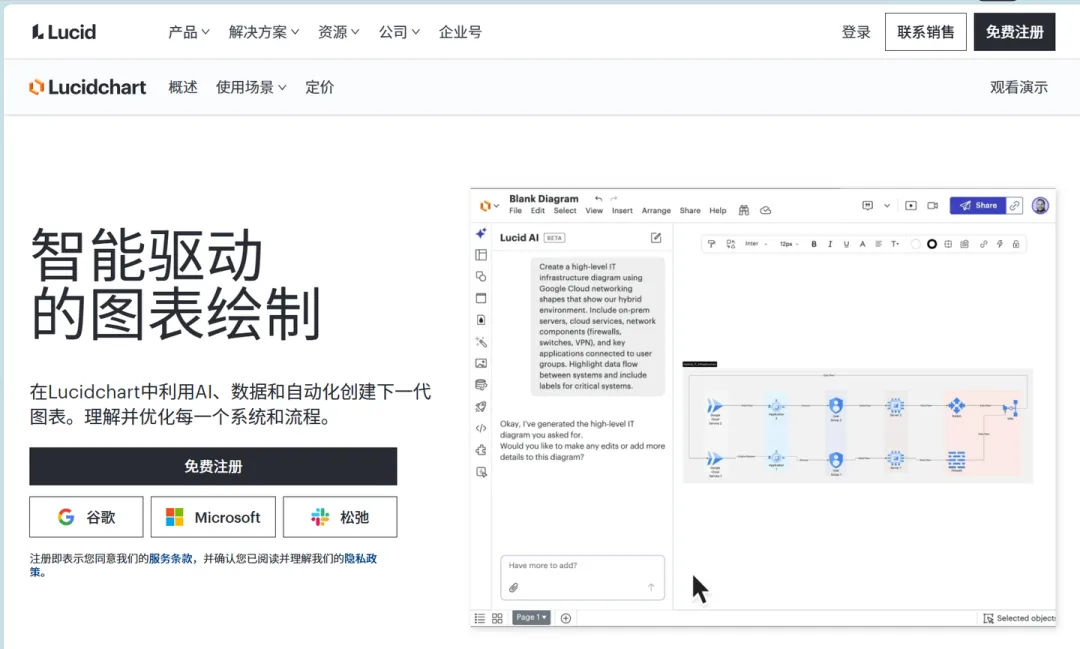 Lucidchart 是一款基于浏览器的在线图表工具,支持流程图、UML 图、网络拓扑图等多种类型。虽然它不直接运行在 PPT 内,但其强大的导出与集成能力使其成为我常用的辅助PPT图表制作软件。