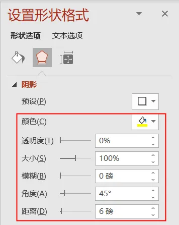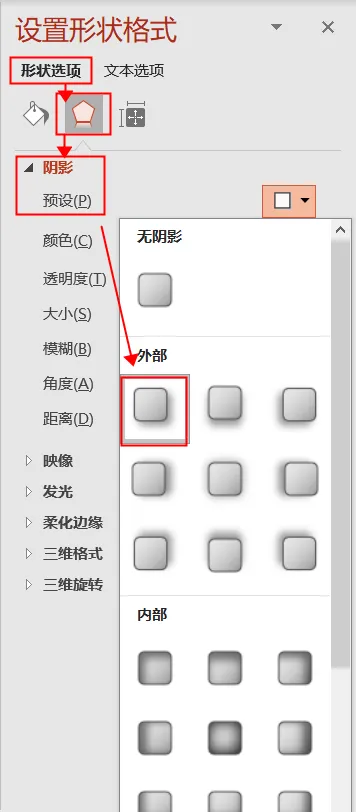 ❷ 点击【形状选项】-【效果】-【阴影】,设置如下: