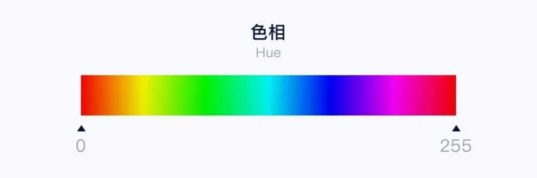 H 是色相(Hue),色相是色彩的首要特征,是区分各种不同色彩的最准确的标准。比如:红、橙、黄、绿、蓝、紫,就分别代表不同的色相。色相取值在 0-255 之间。