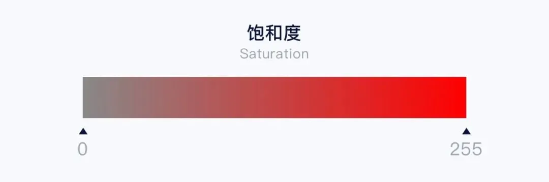 S 是饱和度(Saturation),也就是纯度,取值在 0-255 之间,饱和度越高颜色越鲜艳,饱和度越低颜色越趋近于灰色;