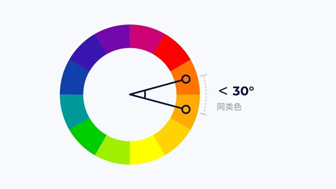色环角度相距 30° 以内的颜色,我们称之为同类色。
