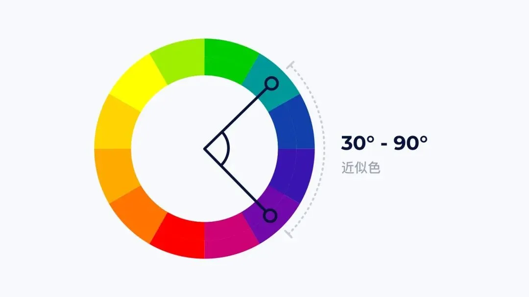色环角度相距 30°-90° 的颜色,我们称之为近似色。