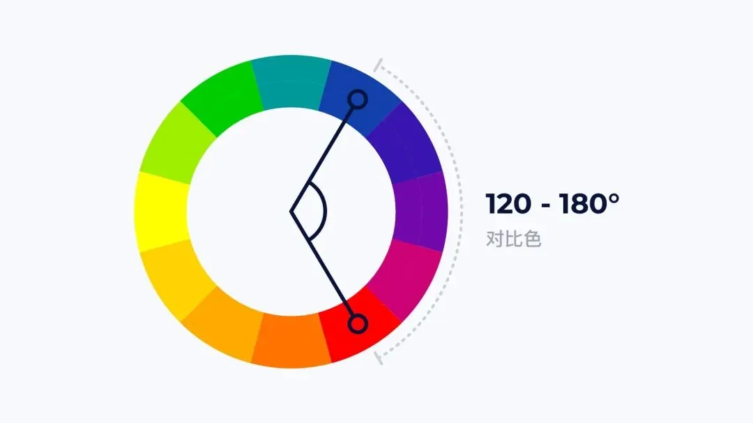 色环角度相距 120°-180° 的颜色,我们称之为对比色。