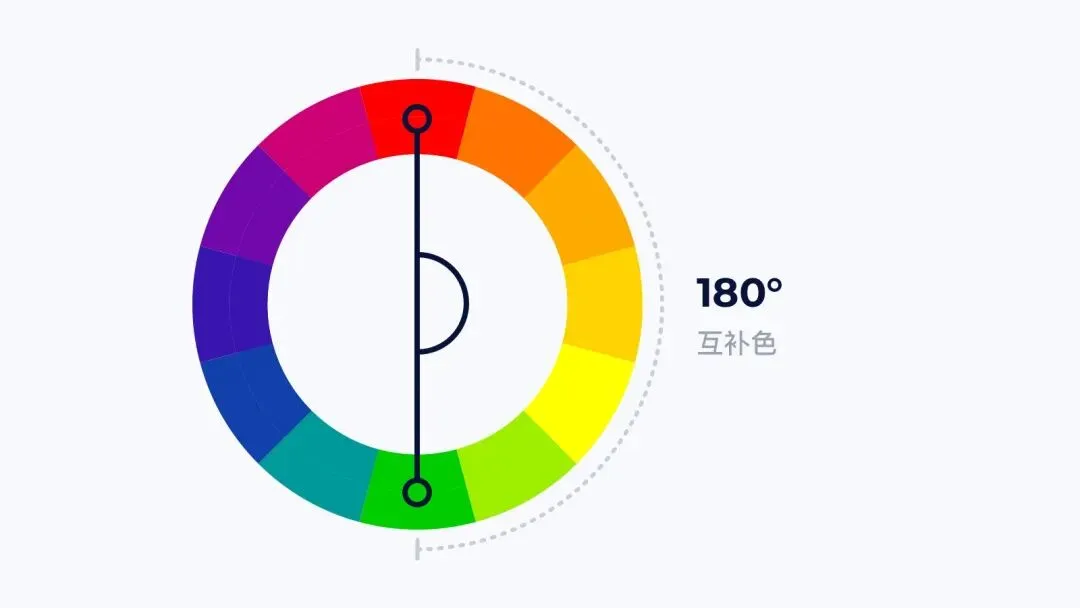 色环上相对的颜色,也就是色环相距 180° 的颜色为互补色。