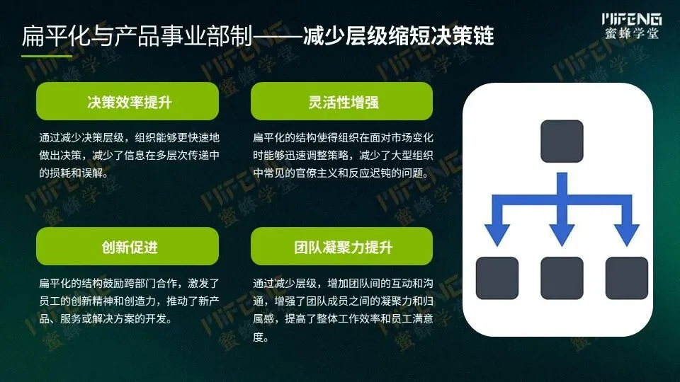 核心就是砍掉不必要的中间层级,让每条产品线像独立的“小公司”,直接对接市场与生产。决策链因此大幅缩短,市场变化能秒速响应,部门间的推诿扯皮也显著减少。