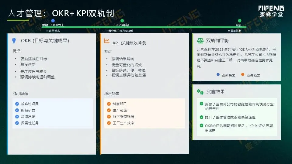 这套机制聪明地解决了“既要马儿跑,又要马儿不吃草”的矛盾,“KPI保吃饭,OKR谋未来”,让公司在稳健经营的同时不忘长远布局。