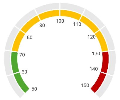 这样设置的目的是因为仪表盘的着色区域是270度,这个区域被划分为10等份,每一份就是27。