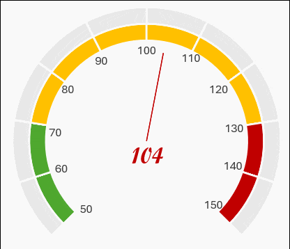 因为仪表盘的起始角度是50°,所以指针位置需要使用公式转换一下: