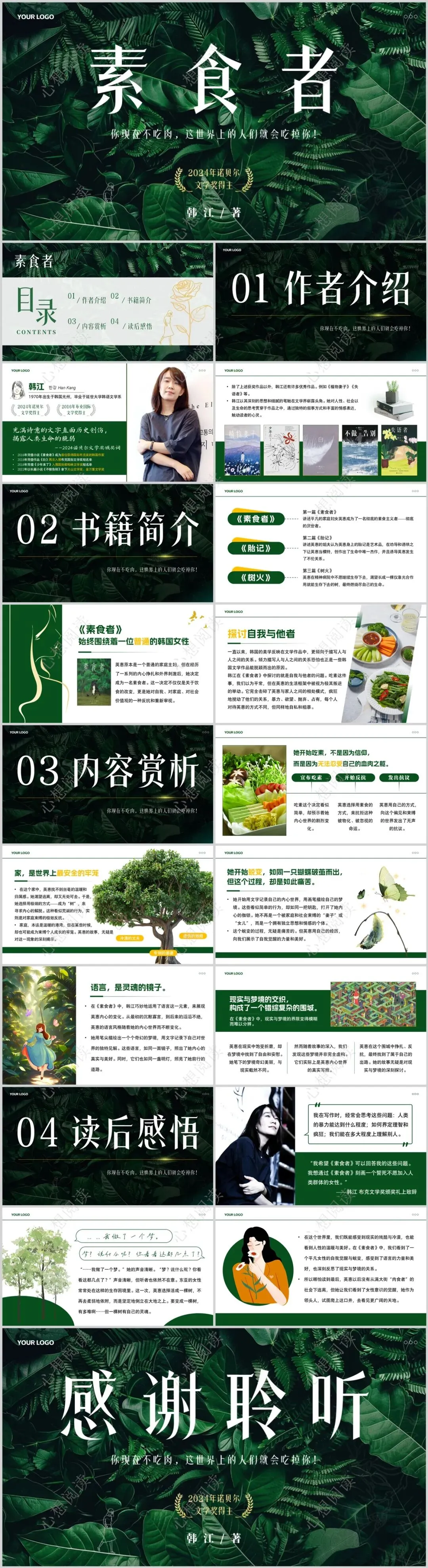韩江《素食者》读书分享PPT20页附带演讲稿3200字