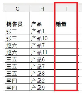 根据以上数据表格,按照销售员和产品进行查询并将结果输出到I列