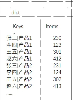 代码首先遍历数据源(A~E列)的每一行,对于每一行,再遍历B~E四个销售员列,来构建一个唯一的“销售员|产品”字符串作为字典的键,并将对应单元格的销量作为值存入字典,最终效果如下图所示: