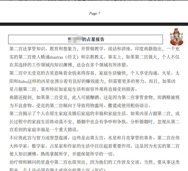 再后来我开始用 Python 写程序:把各种解读内容整理成 JSON 的键值对(比如“月亮-天蝎”对应一段解读),然后自动生成报告 PDF。那会儿也确实有一些朋友买过报告、给过反馈。