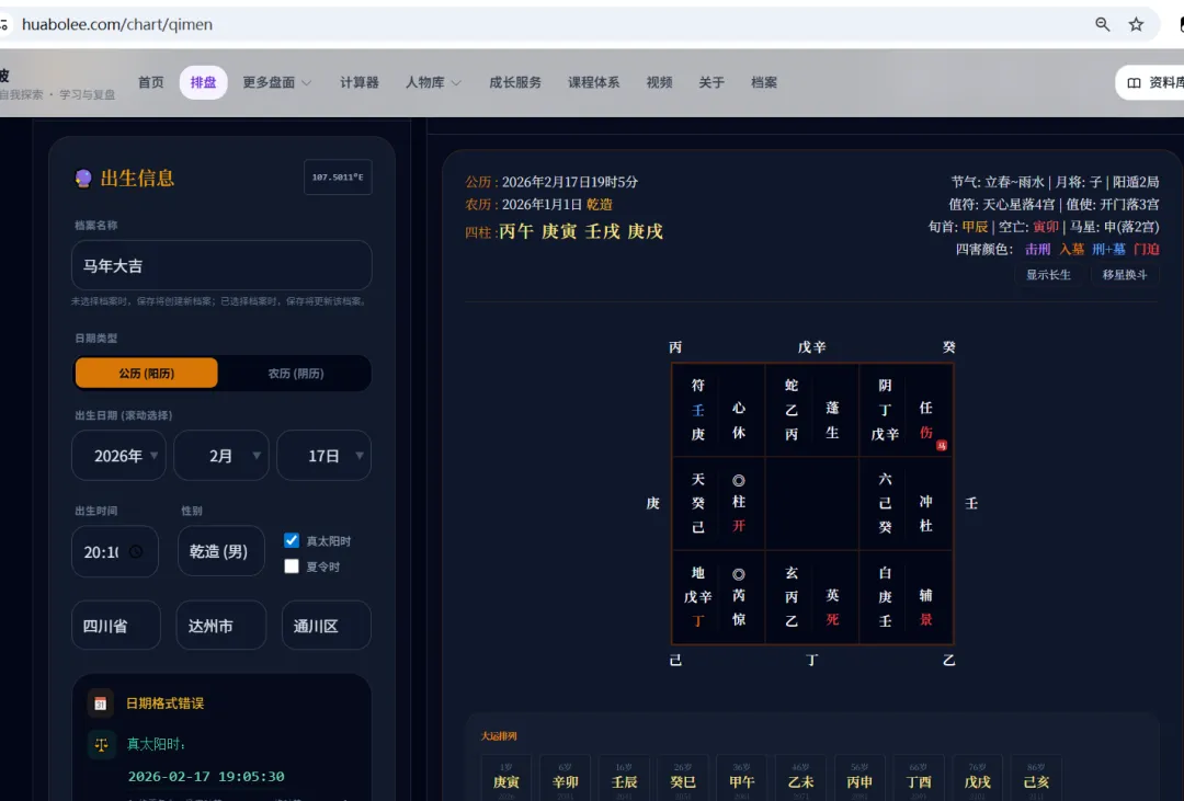 3、回馈粉丝,我会逐渐增加一些开放的功能,目前奇门终身局的排盘功能基本是已经实现。我对比了排盘结果和主流排盘软件结果一致,还有待优化的地方,会进一步的完善。